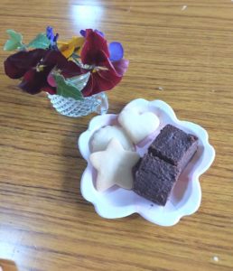 おやつはメープルクッキーとチョコレートケーキ、とても美味しくいただきました。
