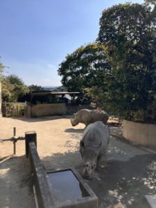 サイ、喧嘩しとるやん!角で突いとるやん!うわっ痛そう!いやがっとるやんー!やめてあげてー!