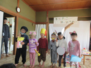 ロバ役のTちゃんがセリフを言うのに苦戦している子の手助けをしていたり、どろぼう役のYくんが、お休みのKくんの楽器を持って歌っていたり、お互いを思いやりながら協力している姿に、成長を実感しました!